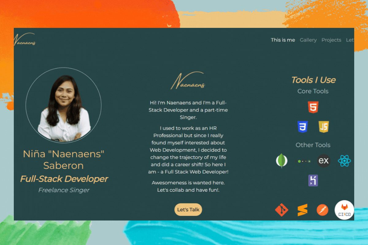 Hi! I'm Naenaens and I'm a Full-Stack Developer and a part-time Singer.